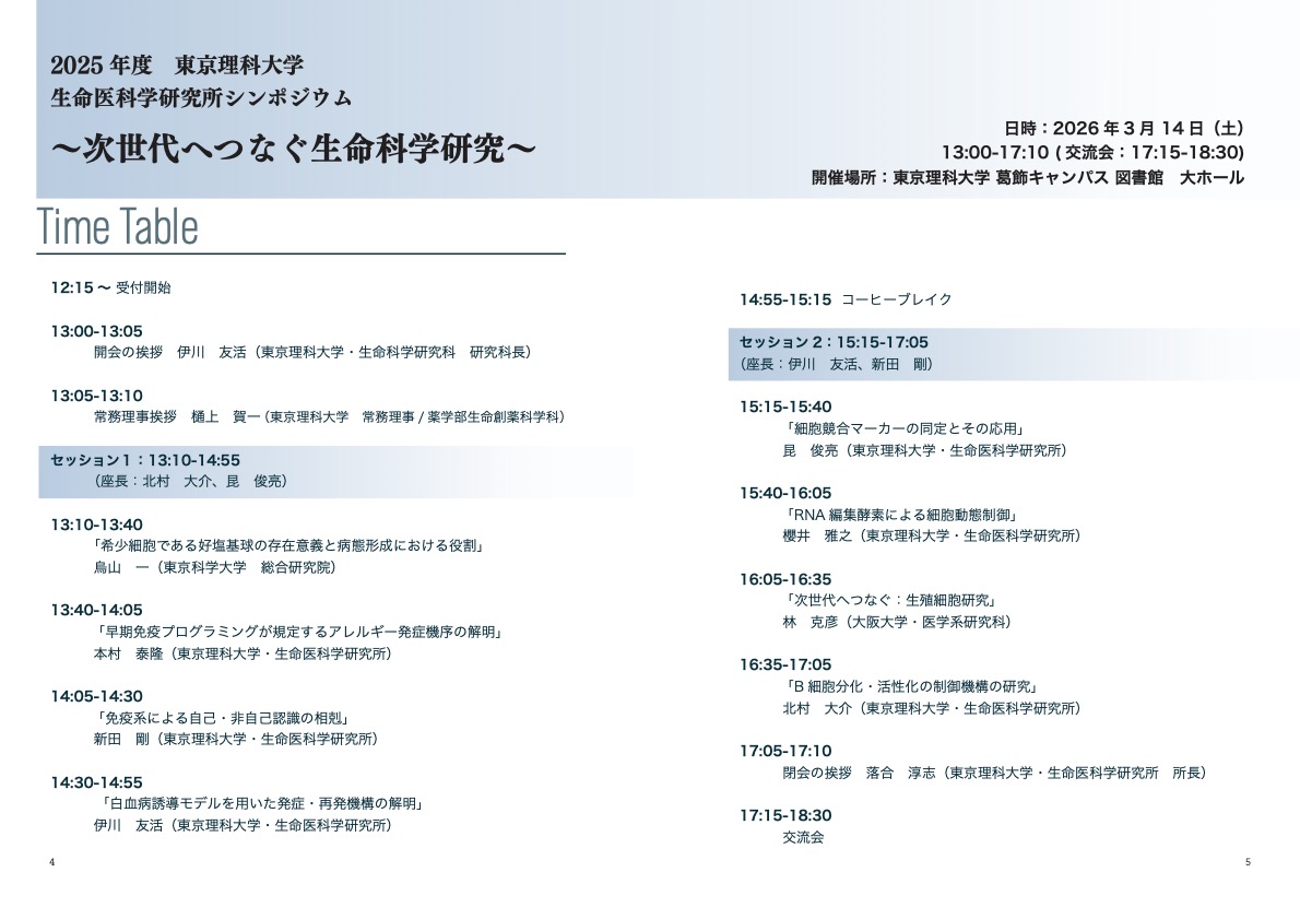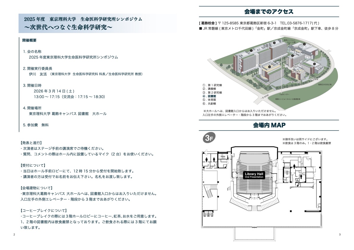2025年度 東京理科大学 生命医科学研究所シンポジウム